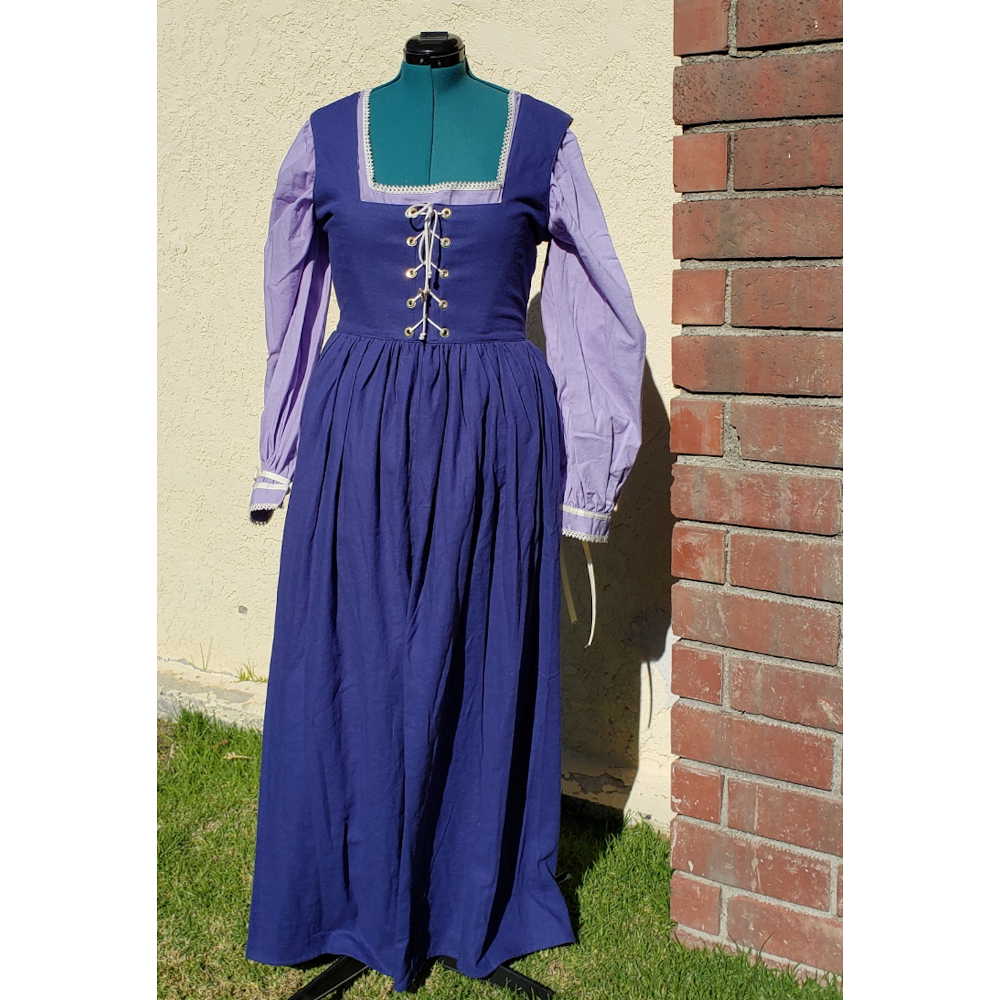 The classic Irish dress renaissance gown is inspired by the artwork of Lucas DeHeere in 1537. He drew several of the very few depictions of Irish folk in the renaissance era and the women are all wearing a variation of this gown. The Renaissance Gown was worn from early Tudor times through the late Elizabethan era almost everywhere from England to furthest southern Spain, especially by the middle classes. Sometimes it is referred to as a kirtle, a gown, or an overdress. Regardless of the name it is worn with any number of underpinnings and layers; from a full sleeved leine to a chemise and skirt, partlettes, or aprons.