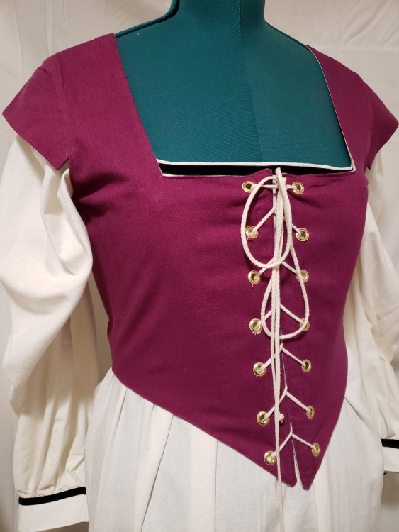 The new linen bodice is perfect for renaissance faire. Sometimes people call them corset bodices, since they have steel boning in for shaping and support. Available in lovely colors, and the square neckline is a very flattering cut, slightly higher than most designers. The extra inch provides a bit of comfort and security. I have been carrying this item recently in my booth at faire, and my customers love it.